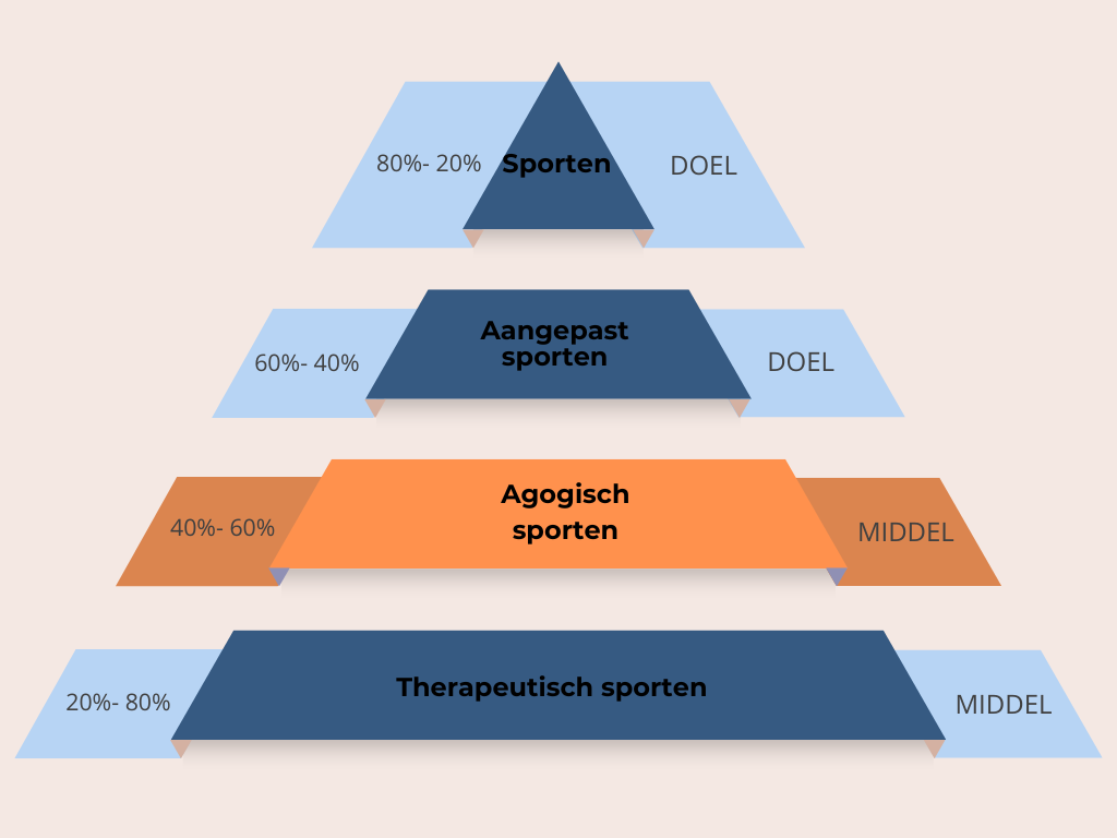 Bokscoaching is voornamelijk gericht op agogisch sporten, maar het proces kan fluctueren tussen verschillende niveaus van de piramide. Soms is het nodig om te beginnen met 'sporten' om vertrouwen op te bouwen, voordat je doorgaat naar agogische trajecten.